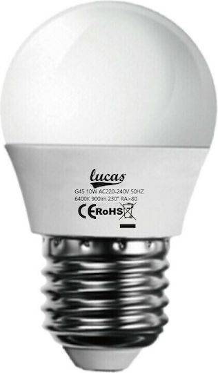 Λάμπα Led G45 Σφαιρική 10W E27 6400klv LUCAS